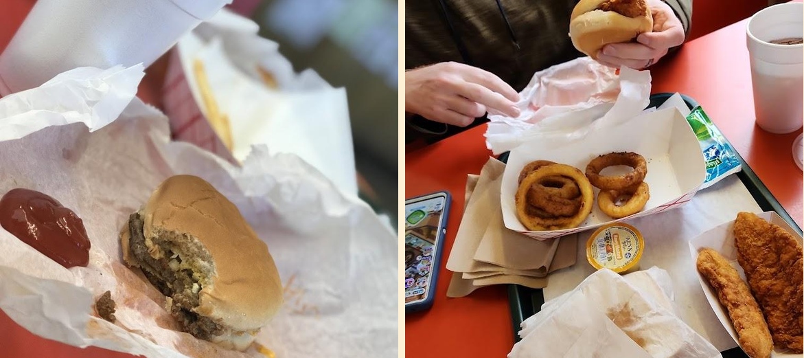 Don't miss the cheeseburgers. The double cheese burger is a favorite. For sides, the French fries are popular. Try the milkshake for dessert; it's a local favorite!