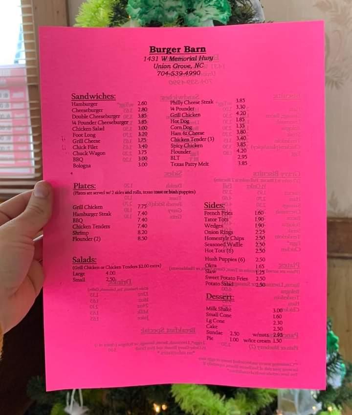 Welcome to Burger Barn, your go-to destination for mouthwatering burgers and a cozy dining experience in Union Grove, NC. Nestled at 1431 W Memorial Hwy, our charming restaurant offers a diverse menu featuring traditional favorites, perfect for breakfast, lunch, or dinner. Enjoy our excellent coffee and a wide selection of teas as you savor local specialties in a relaxed atmosphere. With accessible seating and convenient takeout and delivery options, we cater to everyone, including families with children. Join us for a delightful meal, and don’t forget to try our delicious desserts! Reservations are always welcome.